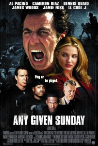 Seeing this ensemble casted, sports drama makes you wonder if the egomaniac tendencies of Oliver Stone are clearly evident here as he pulls a few tricks in providing an intriguing story set around the American football scene, and with an excessive running time. He gives us a dose of slow-motion sequences, black and white fading, quick cuts, and other gimmicks. It does take a while before the viewer is able to settle down to living the plot.“Any Given Sunday” tells of the working conditions both on and off the football field. The film is a typical sports movie and has to take in many plotlines. Tony D’Amato (Al Pacino) is coach of the fictional Miami Sharks team. They are in a losing streak and he feels his team coming apart. D’Amato also needs to contend with his disruptive family life, as a divorcee who never seems to have time to see his kids. His passion for football is very evident, yet he feels frustrated with the intrusions of the female owner of the team, Christina Pagniacci (Cameron Diaz). In a man’s world, she is a new breed. Making a profit is more important than the traditions. She also fights with the esteemed position that her late father held in society. She wants to succeed in her own right.